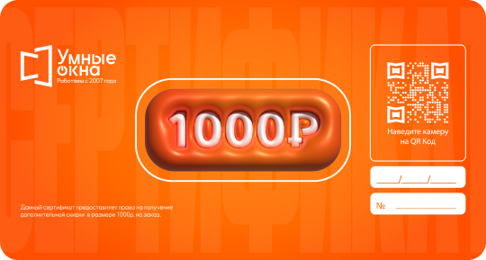 Дополнительная скидка в размере 1000 рублей на заказ окон. Можно получить в качестве «секретного приза» от замерщика.
