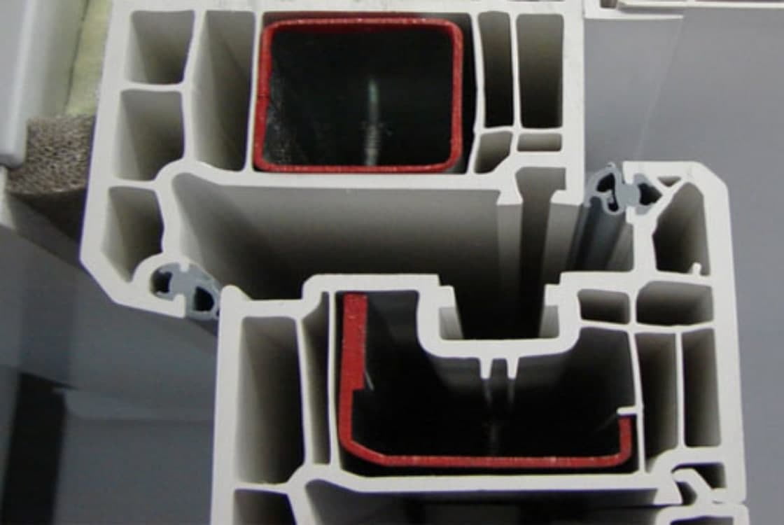 Конструкции из ПВХ лидируют по популярности, что обусловлено их эксплуатационными характеристиками и ценой. Они представляют собой профиль из нескольких камер и ребер жесткости, расположенных вертикально. Поверхность может быть матовой или глянцевой, ламинированной в цвет оконной рамы